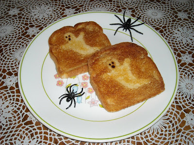 Con un poco de papel de aluminio puedes conseguir que tus tostadas tengan la imagen de un fantasma tan divertido como el de la foto. Eso sí, las tienes que hacer en el horno para que se tuesten de esa forma. También puedes hacer sándwiches con forma de lápida. Nosotros, en este caso, hemos hecho una tostada que hemos decorado.